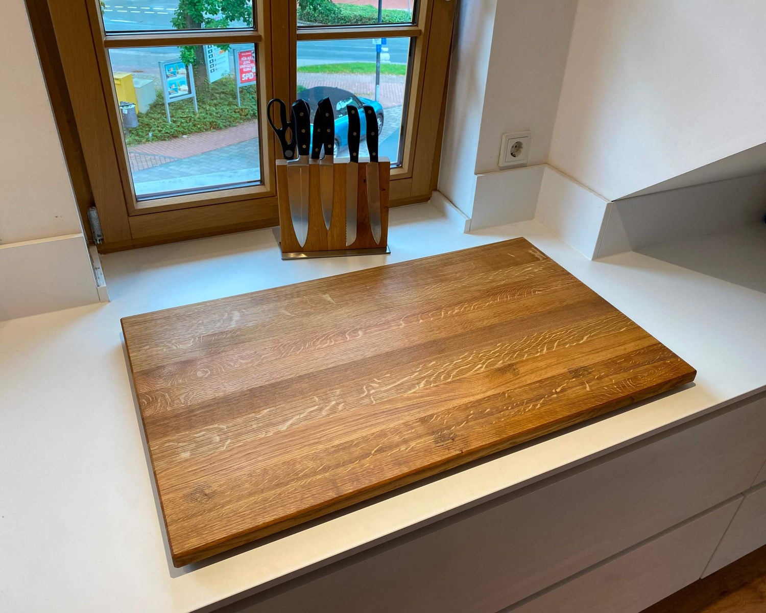 Schneidebrett aus massivem Eichenholz in Handarbeit