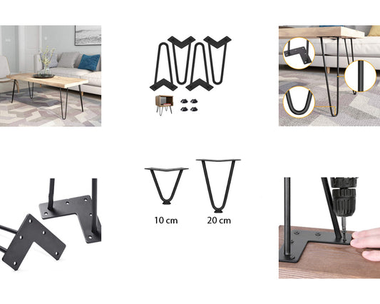 4 er Set Möbelfüße - Hairpin Legs - Haarnadelbeine für Tische, Schränke und vieles mehr