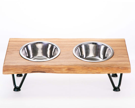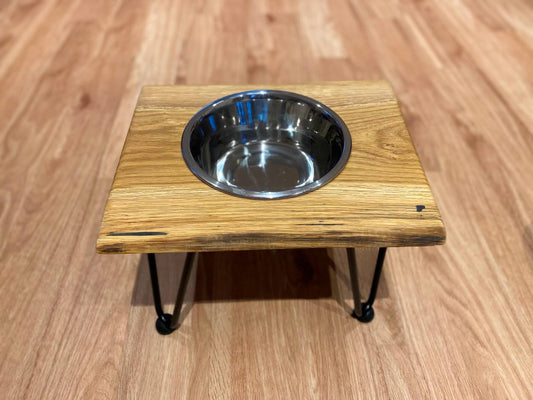Futterstation aus Eichenholz Single mit Baumkante in Handarbeit
