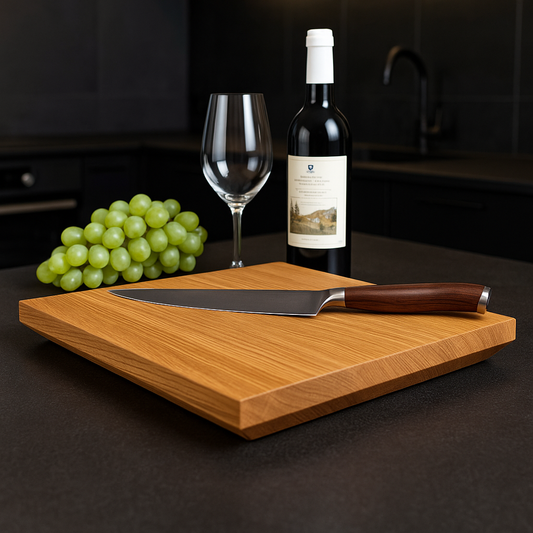 Eiche steht für Robustheit und Stabilität. Ihre helle bis mittelbraune Farbe und die markante Maserung verleihen dem Brett eine rustikale und zugleich elegante Optik. Eichenholz ist besonders widerstandsfähig gegenüber Schnitten und eignet sich perfekt für den täglichen Einsatz. Durch die harte Oberfläche bleibt das Brett auch bei intensiver Nutzung formstabil.