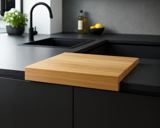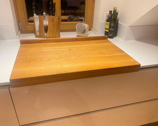 Schneidebrett mit Anschlagkante aus massivem Eichenholz in Handarbeit