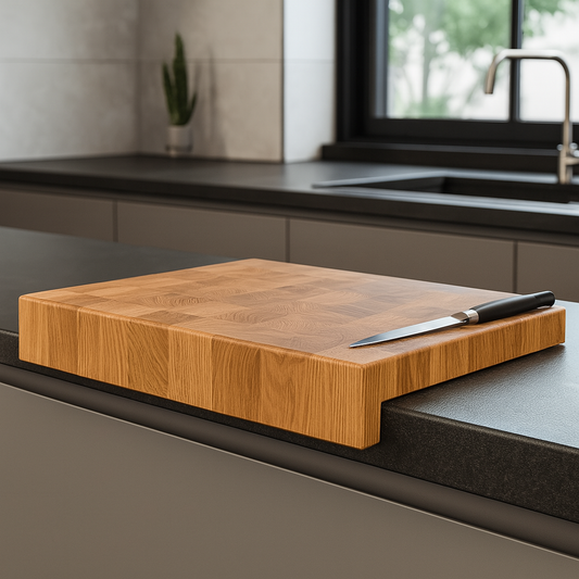Eichenholz Stirnholz Schneidebrett mit Anschlagkante in Handarbeit