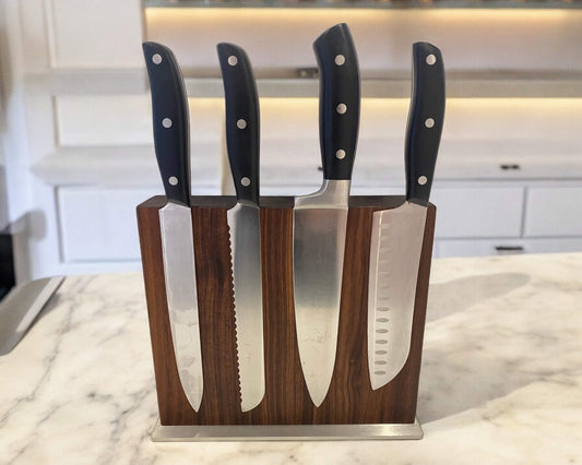 Magnetischer Messerblock aus Nussbaumholz in Handarbeit