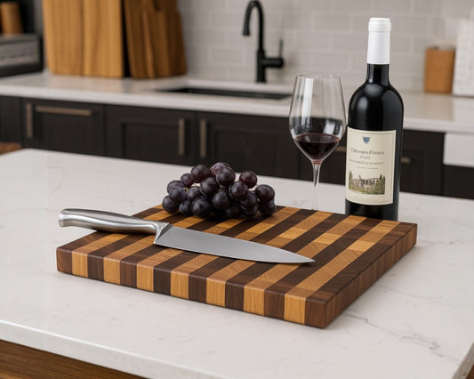 Stirnholz Schneidebrett aus Eiche & Nuss in Handarbeit