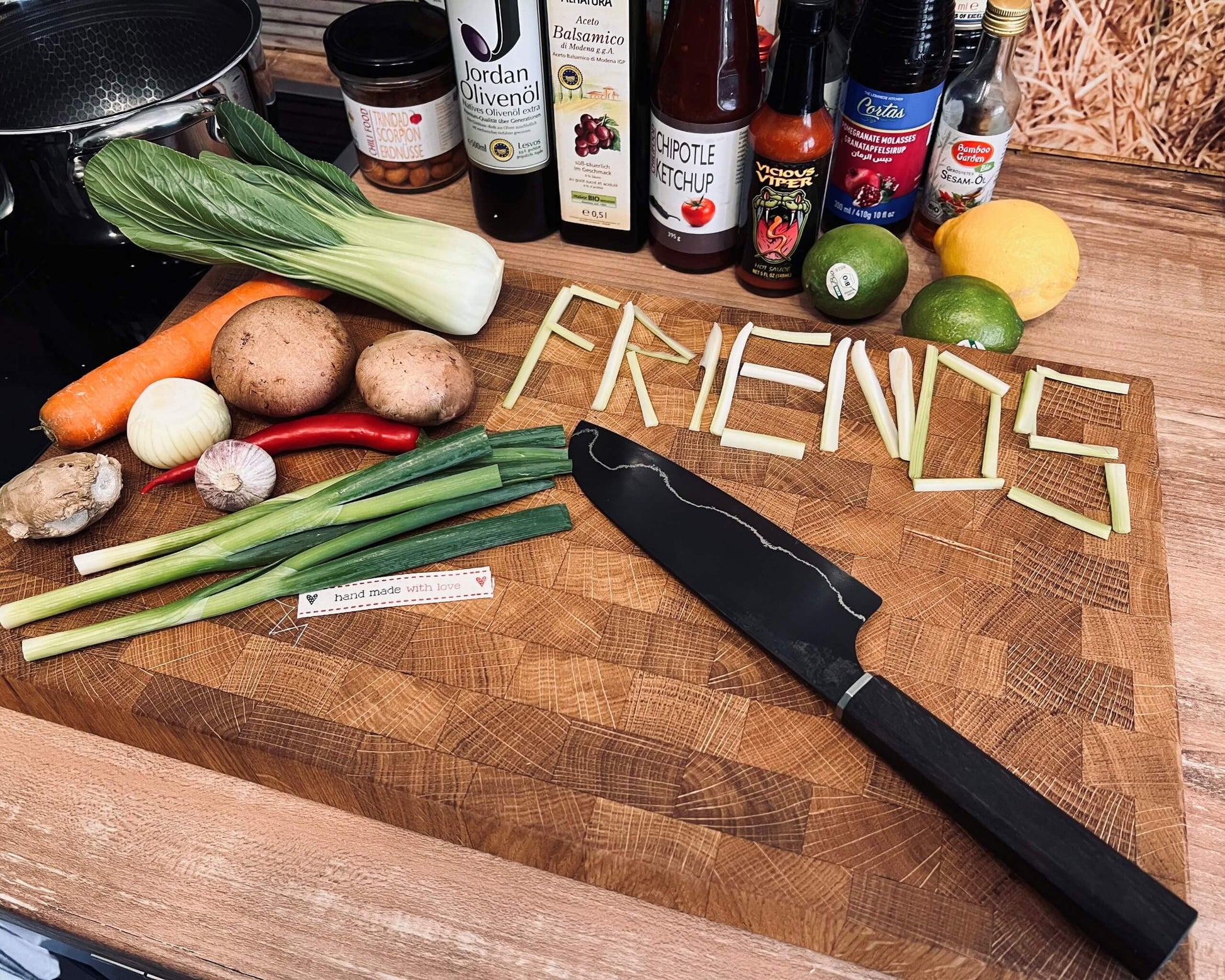 Das Brett war ein Geschenk und die glückliche Empfängerin hat sich riesig über das tolle Schneidebrett gefreut!
